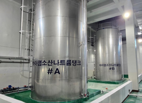 기존 염소(Cl2) 소독방식은 독성가스(허용농도 1ppm)를 활용하는 것이어서 누출 등 사고가 발생하면 근무자나 지역 주민에게 피해를 줄 수 있었으나, 차염 소독설비는 누출 위험이 없어 보다 안전하다.