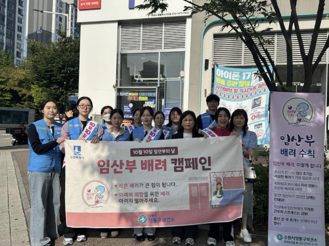 영통구보건소는 10월 1일 영통역 일원에서 기념 캠페인을 열어 시민들에게 임산부 배려 문화를 알리고 홍보 물품을 지원했다.