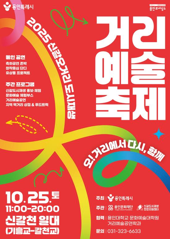 [뉴스시대=김정희 기자] 용인특례시는 25일 신갈오거리에 있는 신갈천 일대에서 ‘2025 신갈오거리 도시재생 거리예술축제’를 개최한다고 14일 밝혔다.
