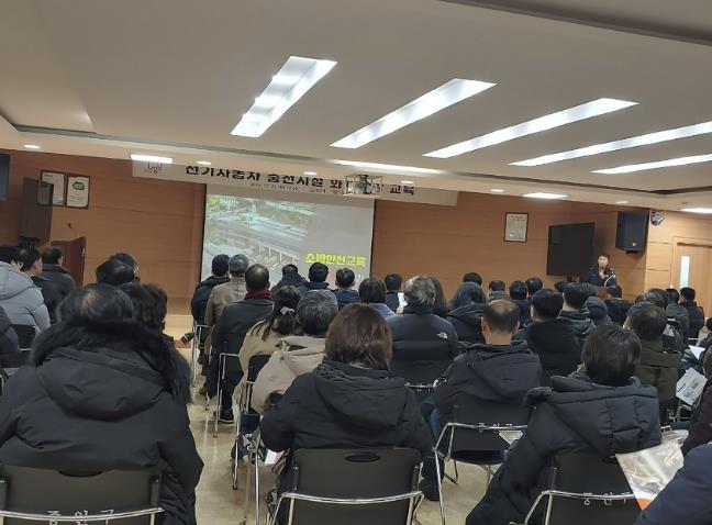 ▲ 지난해 12월 중원구청에서 진행한 성남시 공동주택, 공중이용 시설 관리자 대상 ‘전기차 충전시설 화재예방교육’ 때(자료사진) |