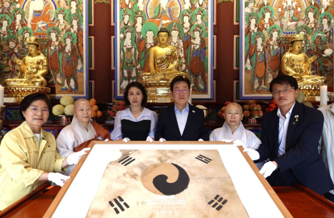 [뉴스시대=김정희 기자] 이재명 대통령 내외는 17일 오후 서울 은평구에 위치한 진관사를 방문했다. 진관사는 일제강점기 일장기 위에 먹물로 태극문양과 4괘를 덧칠해 만든 '진관사 태극기'와 독립신문이 발견된 역사적인 사찰이다.