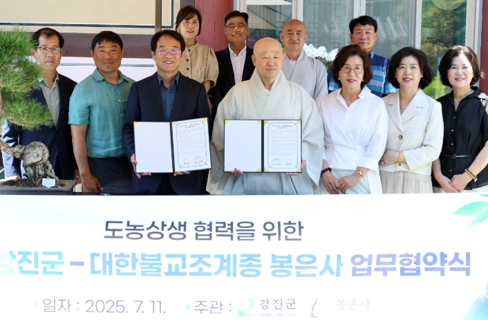 [뉴스시대=김정희 기자] 강진군과 대한불교조계종 봉은사가 지난 11일, 도농상생 협력을 위한 업무협약(MOU)를 체결했다.
