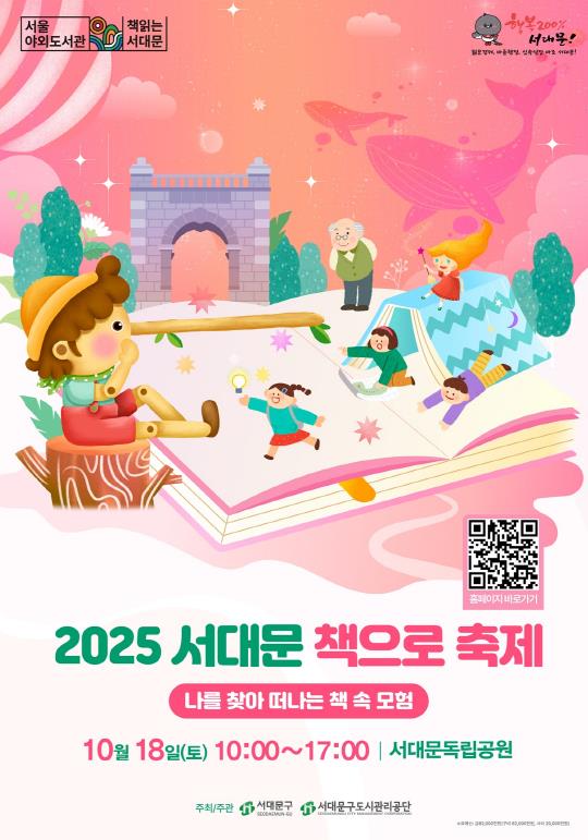[뉴스시대=김정희 기자] 서대문구가 이달 18일 오전 10시부터 오후 5시까지 서대문독립공원 일대에서 책을 통해 가을을 더욱 풍요롭게 하는 ‘2025 서대문 책으로 축제’를 개최한다.