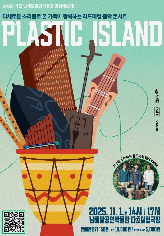 [뉴스시대=김정희 기자] 남해탈공연박물관(이동면 남해대로 2412)은 오는 11월 1일, 월드뮤직 콘서트 ‘플라스틱 아일랜드 Plastic Island’를 개최한다.