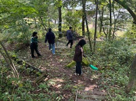 ▲ 1일 국립횡성숲체원 직원들에 의해 넘어짐 사고 발생 우려 지역에 대해 점검 및 조치하고 있다. 한국산림복지진흥원 국립횡성숲체원 제공 |