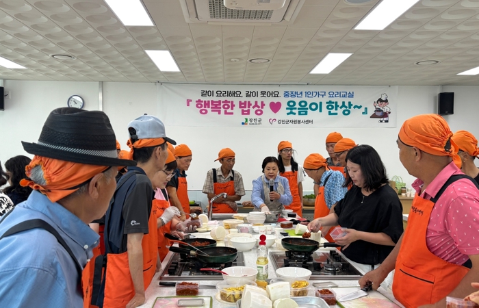 [뉴스시대=김정희 기자] 강진군이 지난 14일 강진군청소년문화의집 2층 조리실에서 고독사 고위험가구(중장년 1인가구)를 위한 사회관계망 형성 지원사업으로 ‘행복한 밥상♥웃음이 한상’ 요리교실을 운영했다.
