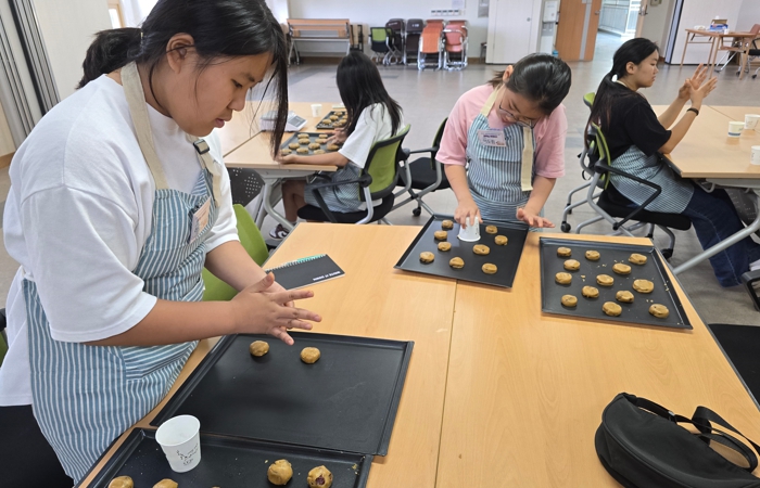 청소년들은 앞치마를 두르고, 강사의 설명에 따라 직접 모양을 만들며 소금빵, 쿠키, 마들렌 등을 구웠다.
