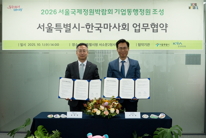 [뉴스시대=김정희 기자] 서울시는 2026년 서울숲에서 개최되는 서울국제정원박람회의 제1호 동행정원 조성을 위해 한국마사회와 업무협약을 체결했다고 밝혔다.