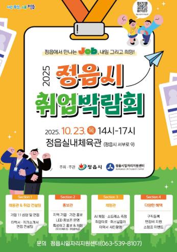 정읍시 일자리지원센터는 오는 23일 오후 2시부터 5시까지 정읍시 실내체육관에서 ‘2025 정읍시 하반기 취업박람회’를 개최한다고 17일 밝혔다.