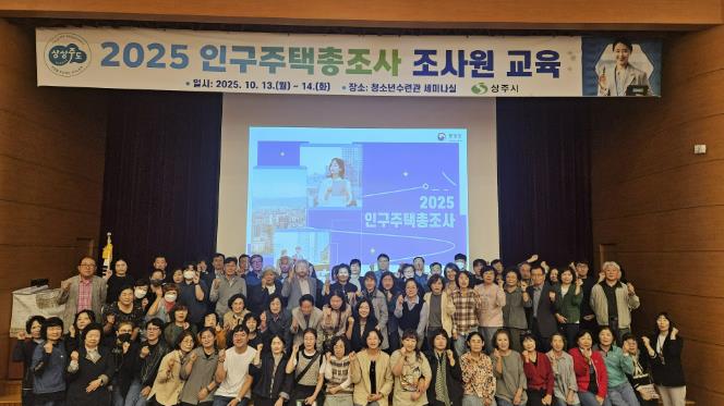 [뉴스시대=김정희 기자] 상주시는 지난 10월 13일부터 14일까지 청소년수련관 세미나실에서 2025 인구주택총조사의 성공적 추진을 위해 조사원 집합교육을 진행했다. 조사원 80명과 예비조사원 5명 등 총 85명이 참석한 이번 교육은 조사 지침 설명, 태블릿 PC 입력 실습, 개인정보보호 준수 의무, 돌발 상황 대응 교육 등을 중심으로 구성됐다.