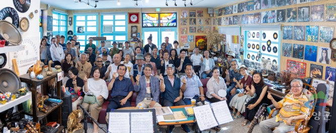 ▲ 청춘거리 내 음악다방에서 공연에 참석한 참석자들의 단체 사진 |