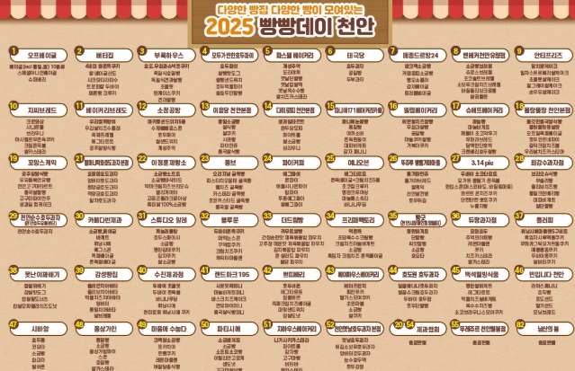 ▲ ‘2025 빵빵데이 천안’ 참여빵집 리스트. |