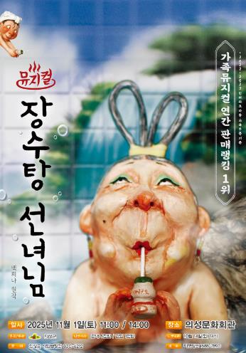 [뉴스시대=김정희 기자] 의성군은 오는 11월 1일, 의성문화회관에서 어린이뮤지컬 『장수탕 선녀님』을 오전 11시와 오후 2시, 총 2회에 걸쳐 공연한다고 밝혔다.