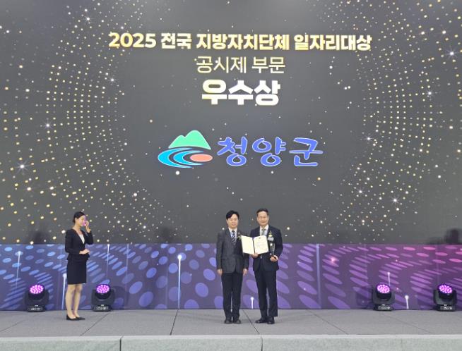 [뉴스시대=김정희 기자] 청양군은 지난 30일 청주오스코 2층 그랜드볼룸에서 열린 고용노동부 주관 ‘2025 전국 지방자치단체 일자리대상’ 공시제 부문에서 우수상을 수상했다고 밝혔다.