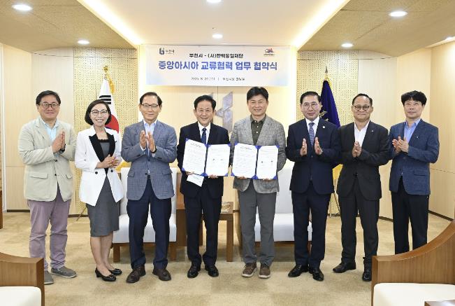 이날 협약식에는 조용익 부천시장과 이자형 한백통일재단 이사장을 포함한 양 기관 주요 관계자들이 참석해, 협약서 서명과 환담을 통해 향후 중앙아시아 교류 협력 방안에 대해 논의했다