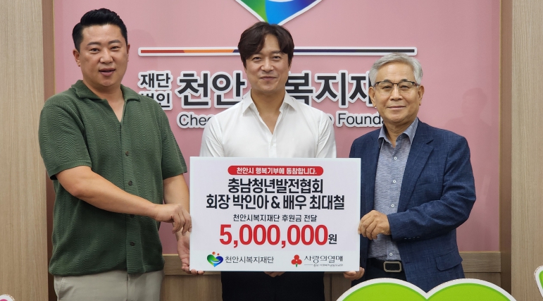 [뉴스시대=김정희 기자] (재)천안시복지재단(이사장 이운형)은 30일 충남청년발전협회(회장 박인아)가 취약계층을 위한 후원금 500만 원을 기탁했다고 밝혔다.