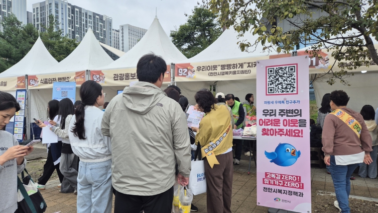 [뉴스시대=김정희 기자] 천안시는 지난 18~19일 이틀간 천안종합운동장에서 열린 ‘2025 빵빵데이 천안’ 축제 현장에서 숨은 위기가구 발굴을 위한 ‘우리이웃, 빵빵하게 지켜요’ 행복키움지원단 홍보부스를 운영했다.