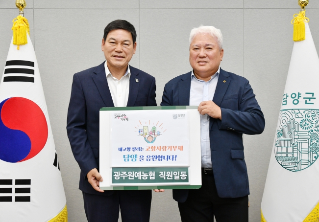 [뉴스시대=김정희 기자] 담양군은 17일 광주원예농협(조합장 정일기)이 임직원들과 함께 고향사랑기부제를 통한 지역 나눔에 동참했다고 밝혔다.