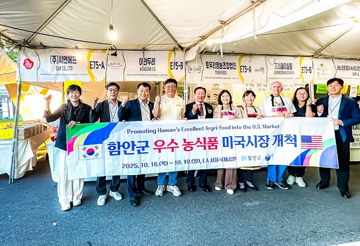[뉴스시대=김정희 기자] 함안군은 지난 16일부터 19일까지 4일간 미국 로스앤젤레스 한인타운 내 서울국제공원에서 열린 제52회 로스앤젤레스 한인축제 농수산박람회에 참가해 지역 우수 농식품을 선보였다고 밝혔다.