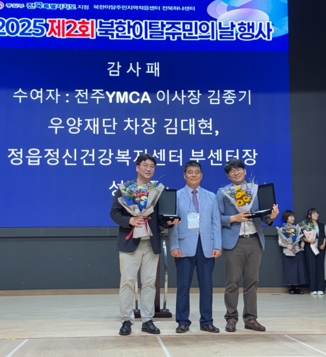 [뉴스시대=김정희 기자] 정읍시정신건강복지센터가 북한이탈주민의 정서적 어려움을 살피고 실질적인 심리지원을 펼쳐온 공로로 ‘2025년 북한이탈주민의 날’ 기념행사에서 감사패를 수상했다.