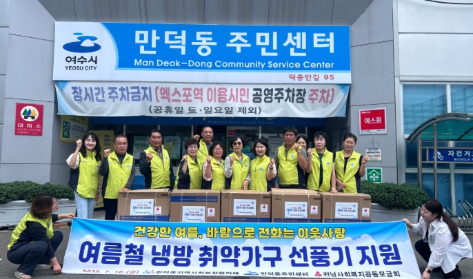 [뉴스시대=김정희 기자] 여수시 만덕동지역사회보장협의체(공동위원장 장혜숙, 류성춘)는 지난 18일 저소득 냉방 취약 가구 25세대를 대상으로 선풍기를 전달해 폭염 취약계층 보호에 나섰다.