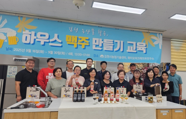 [뉴스시대=김정희 기자] 김천시는 농업기술센터에서 9월 16일부터 총 4회에 걸쳐 김천 자두, 포도 등 지역 농산물을 활용한 '김천 농산물 활용, 하우스 맥주 만들기 교육'을 실시했으며, 지난 30일 수료식을 개최했다.