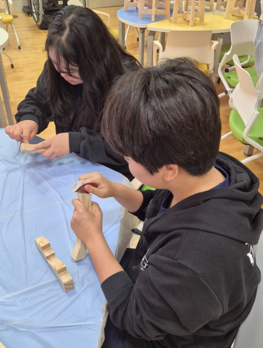 이날(17일)은 도내 중학생 20명(특수교육대상학생 10명, 비장애학생 10명)이 특수교육원을 방문해 목공 체험에 참여했다.