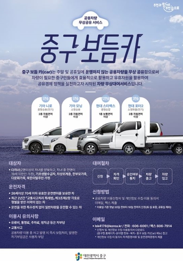 ▲ 대전 중구, 공용차량 무상대여 서비스‘보듬카’큰 호응 |