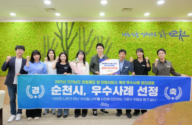 [뉴스시대=김정희 기자] 순천시가 전라남도 도민행복소통실에서 주관한 '2025년 민원제도 개선 우수사례' 공모에서 우수사례로 선정되어, 지난 1일 시상식 및 사례발표를 진행했다.