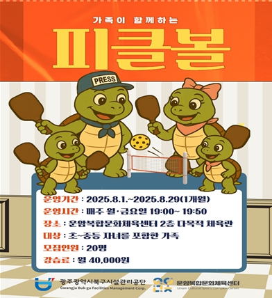 [뉴스시대=김정희 기자] 광주광역시 북구시설관리공단은 여름방학을 맞아 오는 8월 한달 동안 운암복합문화체육센터에서 피클볼 가족 프로그램을 운영한다.