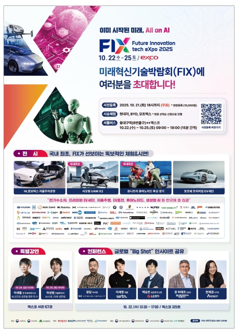 [뉴스시대=김정희 기자] ‘이미 시작된 미래, All on AI’를 주제로 ‘2025 미래혁신기술박람회’가 10월 22일부터 25일까지 4일간 대구 엑스코에서 열린다.