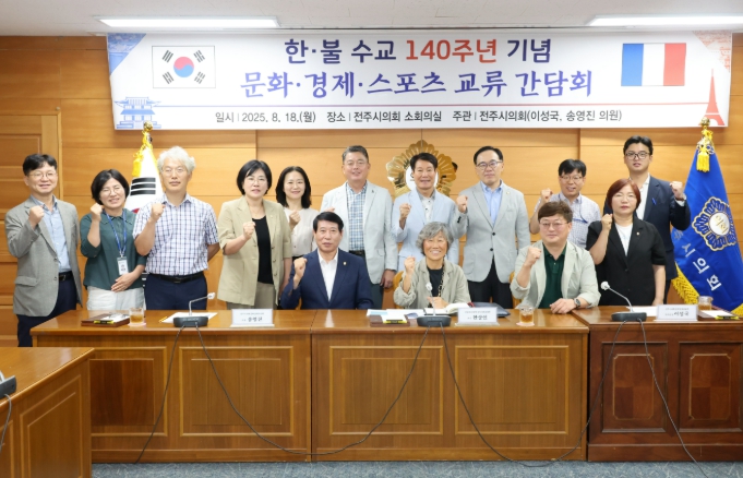 [뉴스시대=김정희 기자] 전주시의회는 18일 의회 5층 소회의실에서 한·불 수교 140주년을 기념한 문화·경제·스포츠 교류 간담회를 열고 협력 방안을 모색했다.