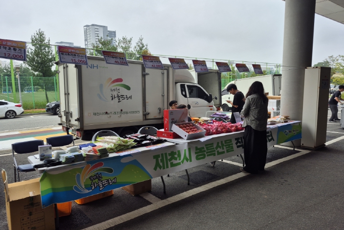 [뉴스시대=김정희 기자] 제천시는 지난 9월 30일 충북 오송단지에서 열린 식품의약품안전처 주관 직거래장터에 지역 농산물 판매업소 ‘하늘뜨레’와 함께 참여해, 오송단지 내 6개 입주기관 직원과 주민 등 2,000여 명을 대상으로 지역 특산품을 판매했다.