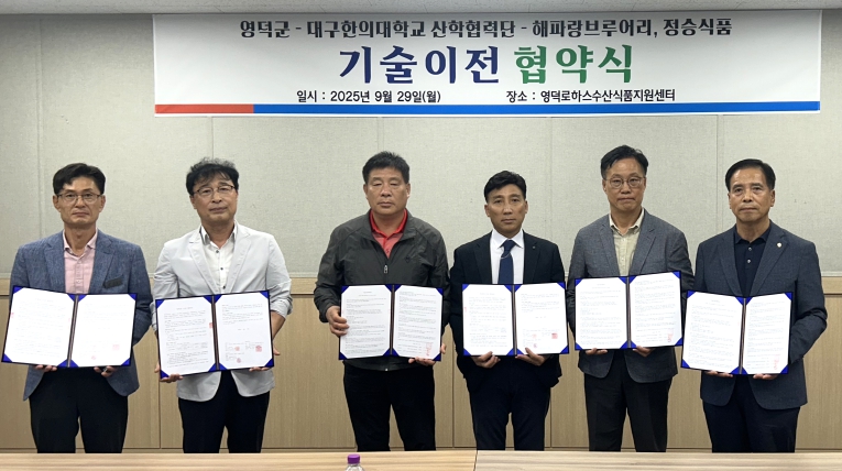 이번 기술이전은 영덕군이 ‘영덕로하스 거점 단지 활성화 사업’을 통해 해양자원의 고부가가치를 높이는 기술개발을 진행해 온 결과로, 관내 기업의 경쟁력 강화와 지역 경제 활성화에 이바지할 것으로 기대된다.