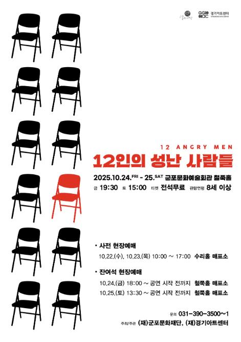 [뉴스시대=김정희 기자] (재)군포문화재단은 오는 10월 24일 ~ 10월 25일 군포문화예술회관철쭉홀에서 기획공연“12인의 성난 사람들”을 선보인다.