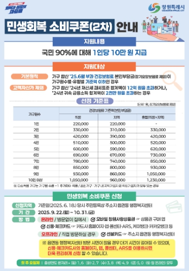 [뉴스시대=김정희 기자] 창원특례시는 추석 명절을 앞두고 민생회복 소비쿠폰 2차 지급을 통해 지역경제에 활력을 불어넣고 소상공인들에게 힘을 보내고 있다. 이번 2차 지급 대상은 총 91만 5,548명으로, 9월 22일부터 지급이 시작된 지 며칠 만에 벌써 84.5%에 해당하는 77만 3,719명이 발급받아 시민들의 높은 관심을 입증했다.