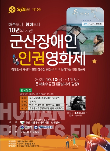 [뉴스시대=김정희 기자] 군산시 장애인가족지원인권센터가 10월 10일부터 11일까지 은파호수공원 물빛다리 광장에서 군산시민을 대상으로 장애인 인식개선 및 인권의식 함양을 위한 2025년 제10회 군산장애인인권영화제를 개최한다.