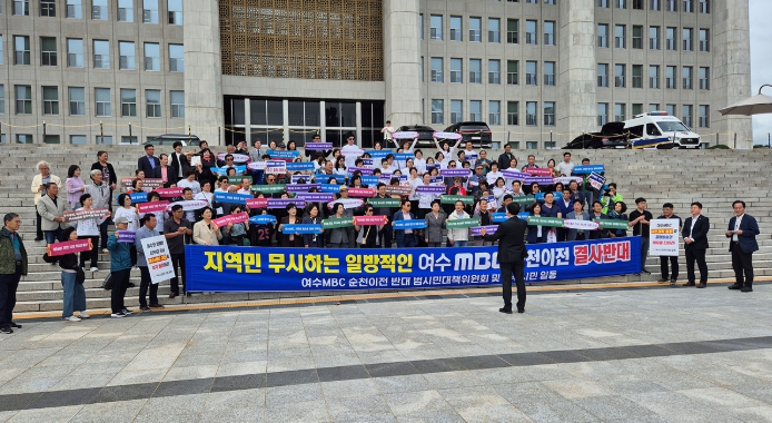 이들은 또 “여수MBC는 지반 반세기 동안 여수시민의 사랑과 후원으로 성장한 지역 대표 방송사”라며 “다매체 시대 경영난에도 불구하고 소도시 여수에서 자리를 지킬 수 있었던 것은 시민들의 변함없는 성원 덕분”이라고 강조했다. 그러면서 “지역 협의나 공론화 과정도 없이 일방적으로 순천이전을 공식화한 여수MBC의 부당하고 비도덕적인 행태를 바로잡아 달라”며 강력 항의했다.