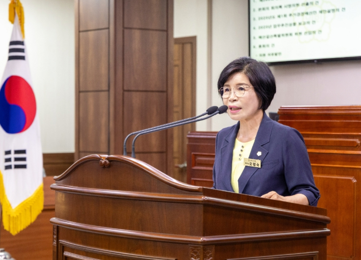 [뉴스시대=김정희 기자] 순천시의회 오행숙 의원(더불어민주당, 승주·주암·송광·서·황전·월등)이 지난 15일 제288회 임시회 제1차 본회의에서“금당공원 명칭을 백강 공원으로 변경하고, 독립운동가 백강 조경한 선생의 추모 공원으로 정비할 것”을 제안했다.