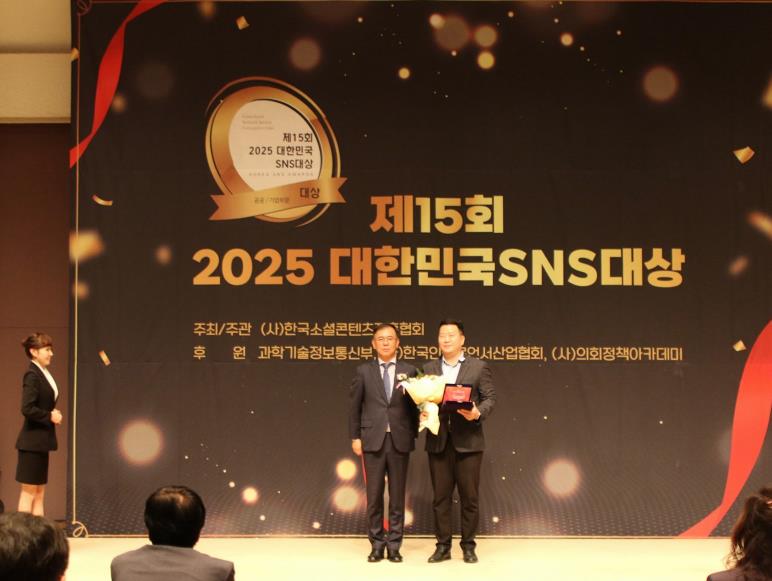 ‘대한민국 SNS 대상’은 (사)한국소셜콘텐츠진흥협회가 주최하고 과학기술정보통신부 등이 후원하는 국내 최고 권위를 자랑하는 사회관계망(SNS) 평가 시상식이다. 공공기관과 기업의 SNS 운영 성과를 전문가 심사와 데이터 분석을 통해 종합적으로 평가해 수상 기관을 선정한다.