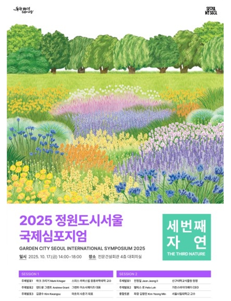 [뉴스시대=김정희 기자] 서울시는 오는 17일 동작구 전문건설회관 대회의실에서 자연과 도시의 조화와 공존, 정원의 미래 역할 등에 대해 논의하는'2025 정원도시서울 국제심포지엄'을 개최한다. ‘세 번째 자연’을 주제로 정원‧조경 분야의 국내외 전문가들이 한 자리에 모일 예정이다.