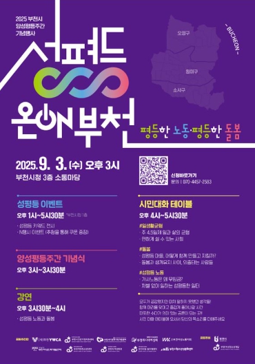 [뉴스시대=김정희 기자] 부천여성청소년재단은 2025년 양성평등주간을 맞이하여 9월 3일 오후 3시 부천시청 3층 소통마당에서‘성평등 溫(ON) 부천 평등한 노동 평등한 돌봄’주제로 기념식과 시민대화 테이블 등 다양한 행사를 개최한다.