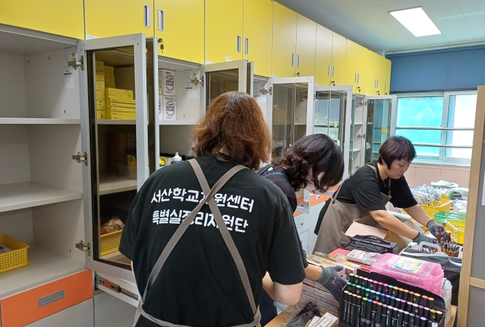 ▲ 서산교육지원청 학교지원센터, 성연중 미술실 정리 지원 |