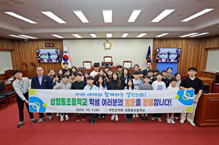 무안군의회 김봉성 행정문화복지위원장은 “오늘 방문이 학생들이 의회의 역할과 민주주의의 소중함을 이해하는 계기가 되길 바란다”며 “앞으로도 다양한 체험과 교육의 장을 마련하여 미래세대와 함께하는 열린 의회를 만들어가겠다”고 전했다.
