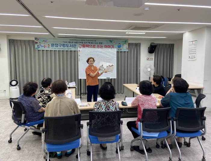 ▲ 은평구립도서관, 시니어 독서 문화 프로그램 ‘그림책으로 쓰는 이야기’ 진행 모습 |