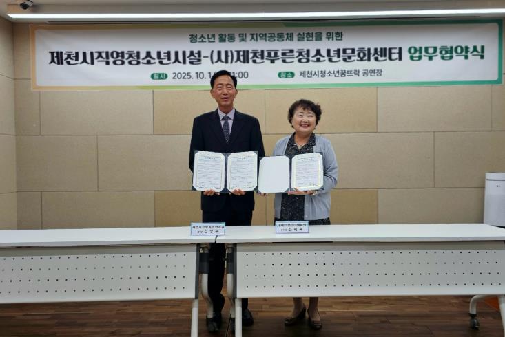 한편, 제천시직영청소년시설은 청소년문화 프로그램과 자율적 활동 지원을 통해 청소년 중심의 문화를 확산하고 있으며, 이번 협약을 계기로 지역 공동체와의 연대가 한층 강화될 전망이다.