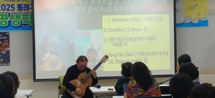 동래구 관계자는“품격 있는 공연을 선사하기 위해 뜻깊은 나눔을 실천해 주신 연주자분들게 감사드린다”라며 “앞으로도 평생학습관 브랜드 강좌인 평생학습사계를 통해 배움과 문화가 공존하는 기회를 지속적으로 마련하겠다”라고 말했다.