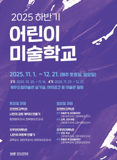 [뉴스시대=김정희 기자] 제주특별자치도 도립미술관(관장 이종후)은 10월 25일부터 12월 21일까지 ‘2025 어린이 미술학교’ 하반기 교육프로그램을 운영한다.