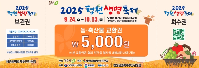 한편, 2025 청원생명축제는 9월 24일부터 10월 3일까지 10일간 ‘팜(Farm)과 함께, 펀(Fun)이 피어나다’라는 주제로 오창읍 미래지농촌테마공원에서 개최된다.