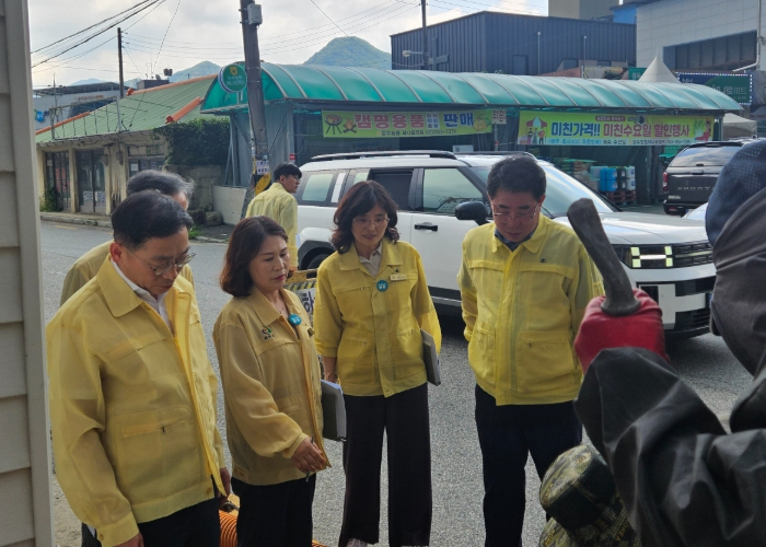 먼저 전반적인 재해복구사업 진행 상황과 건설현장 야외 근로자에 대한 폭염 대책을 청취하고, 운주면사무소 앞 도로에서는 침수피해 예방을 위한 빗물받이 정비실태를 직접 확인했으며, 특히 장선천 재해복구사업 현장에서는 제방공사 진행 상황과 2차 피해 예방을 위한 안전조치 여부를 집중적으로 점검했다.